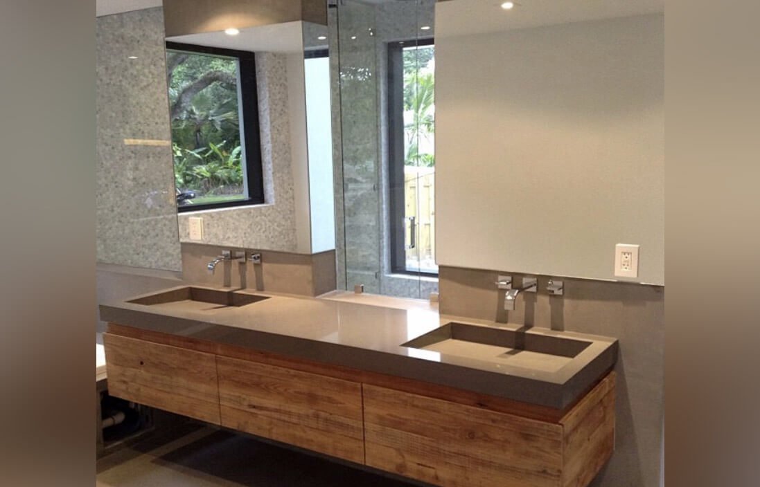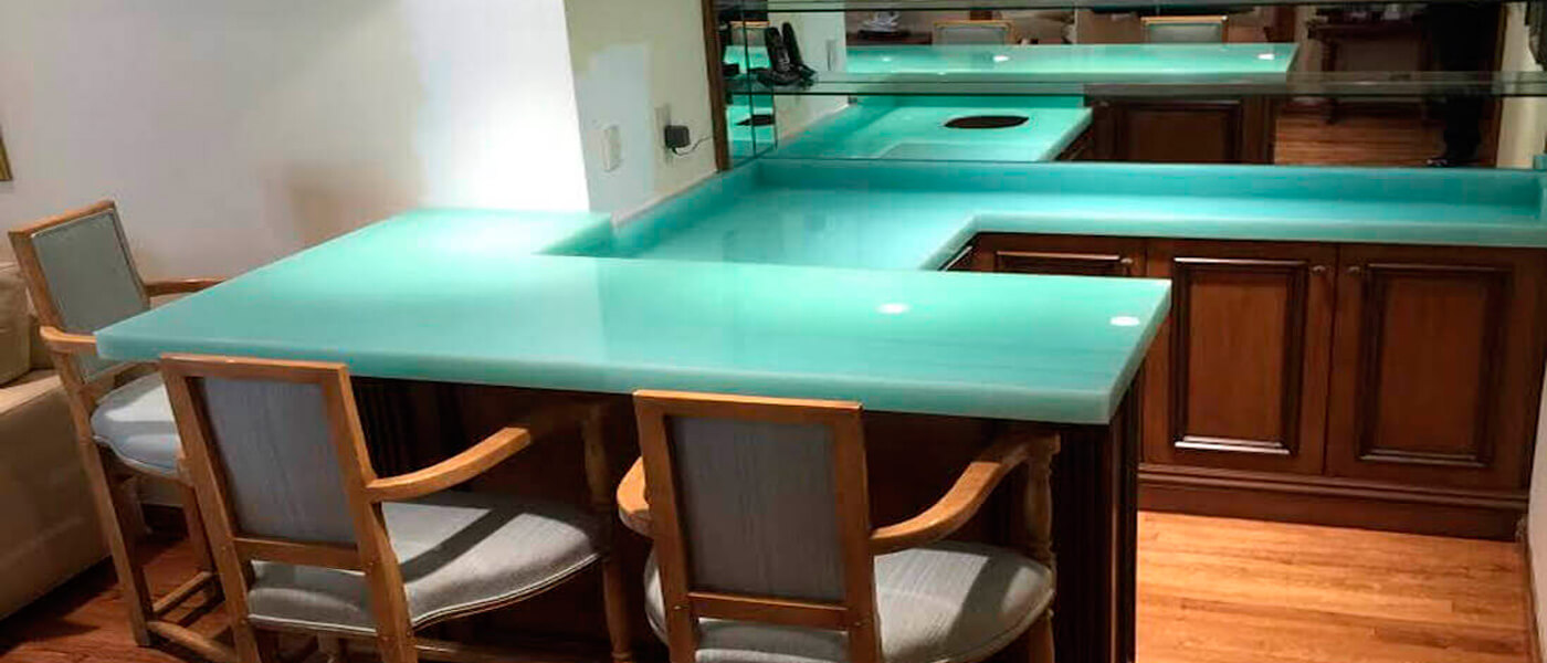 Our glass tops designs are made from the highest quality recycled glass materials. We have a selection of beautiful slab colors that you can complement with LED light panels to create a perfect armony. We are one of the few companies in South Florida that are able and expert to handle this type of material.