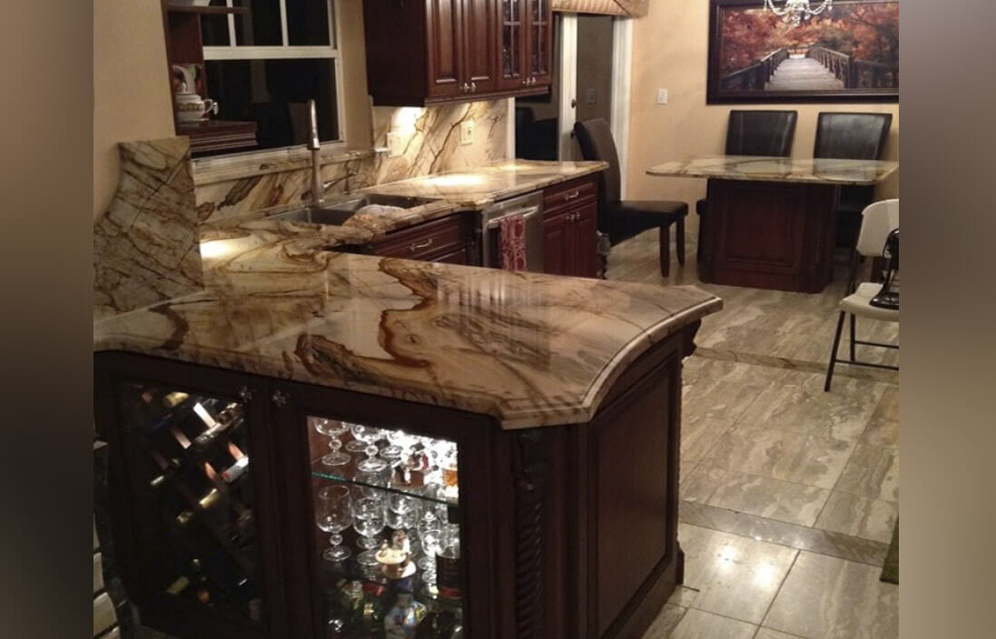 Global Marble Tops is specialist to create luxurious countertops for kitchen or bathroom with your own distinctive taste. Our team is trained and available to costume designs for you dream kitchen or bathroom. Global Marble Tops are trained to handle a full line of granite, marble, onyx, quartz, quartzite, semi precious stone, limestone, porcelain, travertine and recycled glass. We are also approve & certified for Neolith, Silestone, Dekton, Compac Quartz, Caesarstone and Cambria companies.